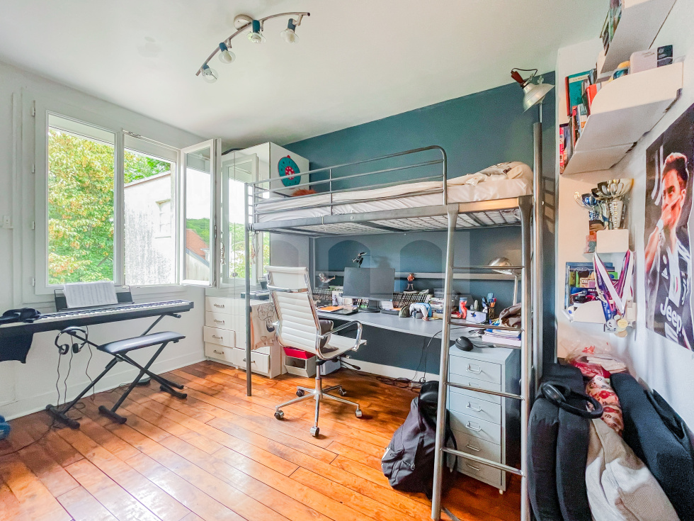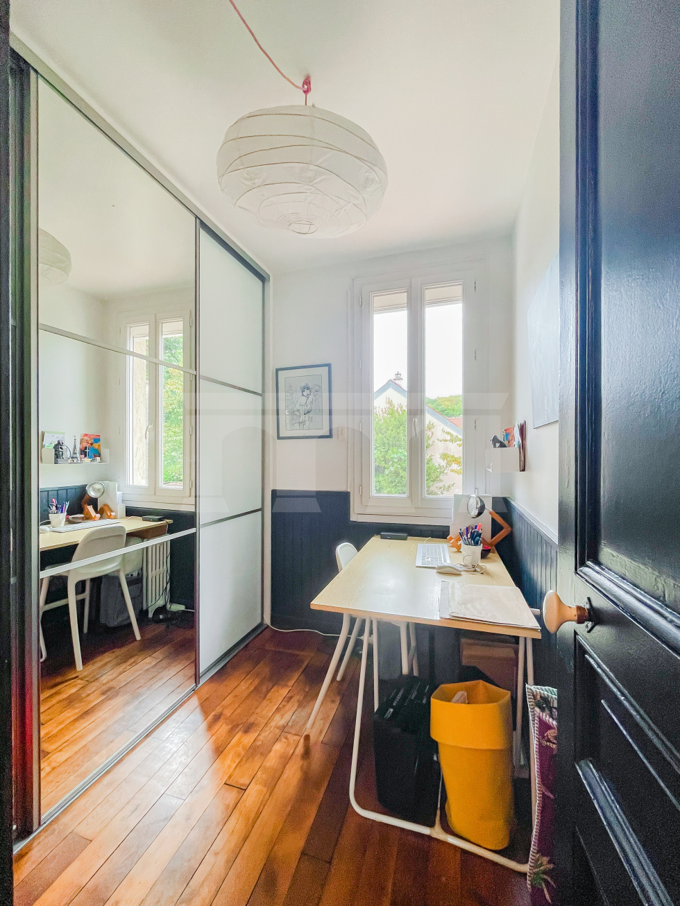 Située à Viroflay rive droite, dans une rue pavillonnaire et familiale, proche des commodités tout en étant au calme, à proximité de la forêt, maison de 102 m2 édifiée sur 178 m2 de terrain.Lumineuse et pleine de charme (parquet - hauteur sous plafond), elle comprend, au rez-de-chaussée : entrée avec placard, WC, salon / salle à manger, cuisine ouverte donnant directement sur terrasse et jardin.Au premier étage : palier, bureau (ou chambre de bébé) avec dressing, 2 chambres et salle de bains avec WC.Sous les combles : chambre.Au sous-sol semi-enterré : salle de jeux (ou chambre d'amis), deux espaces de stockage et salle de douches / buanderie.Un abri de jardin en dur et une cuisine d'été complètent la terrasse dans la partie jardin à l'arrière de la maison sans vis à vis.Sur la partie avant du terrain une seconde terrasse (ou stationnement possible).En très bon état général.A 2 minutes de la forêt domaniale de Fausses-Reposes, 6 minutes à pied des écoles et de la gare de Viroflay rive droite (Ligne L et T6), 8 minutes des commerces.