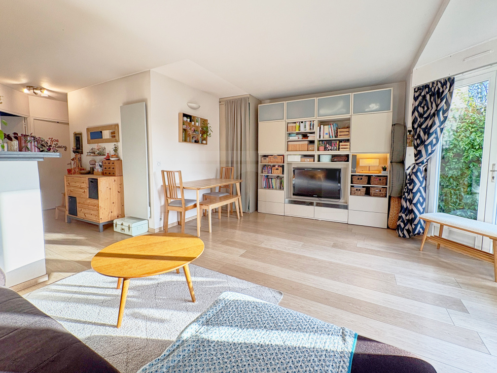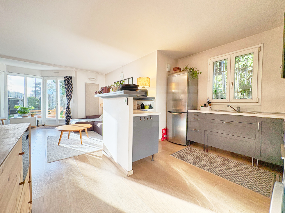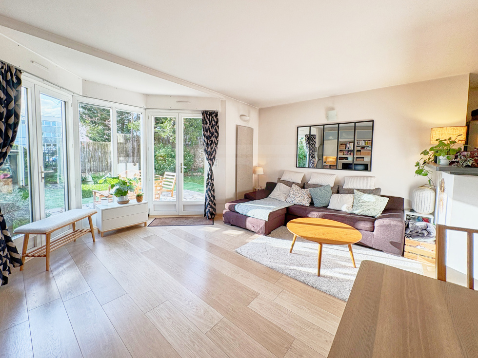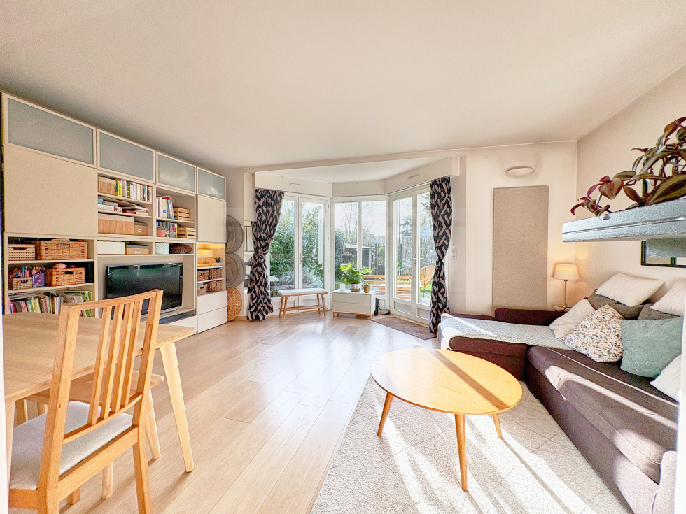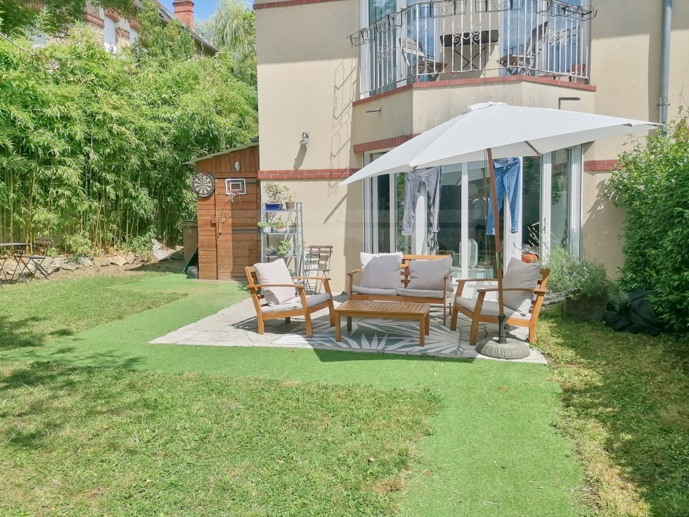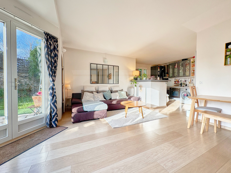 Dans une petite copropriété située sur Viroflay rive droite, appartement de 3 pièces d'une surface de 54,1 m2 habitables bénéficiant d'une terrasse et d'un beau jardin privatif faisant le tour de l'appartement.Il comprend une entrée avec placard, WC séparés, salle de douche, 2 chambres, cuisine US aménagée et équipée et pièce de vie sans vis-à-vis avec un bow window donnant accès à une terrasse et un jardin exposé ouest.Sur le jardin un cabanon et accès à une cave bétonnée sur l'arrière (côté chambres).Place de parking privative extérieure juste devant le portillon du jardin.A 5 minutes à pieds de la gare rive droite et des écoles.