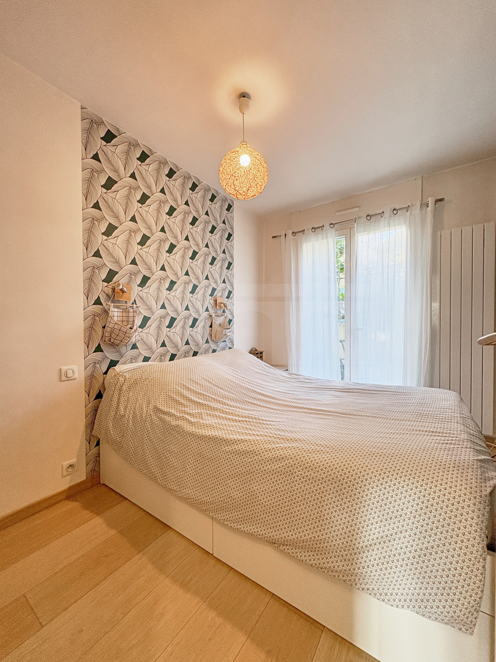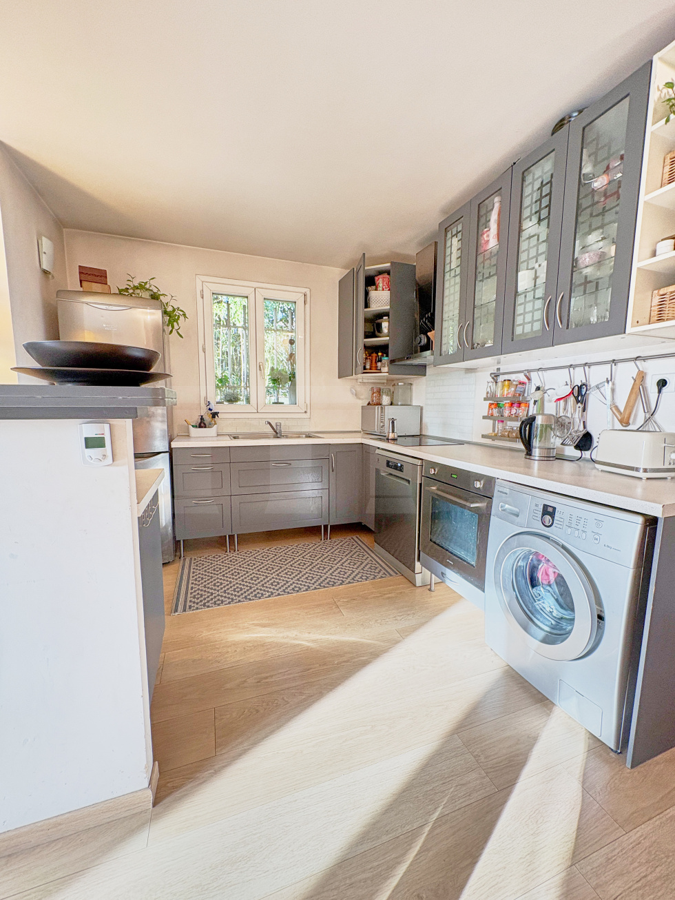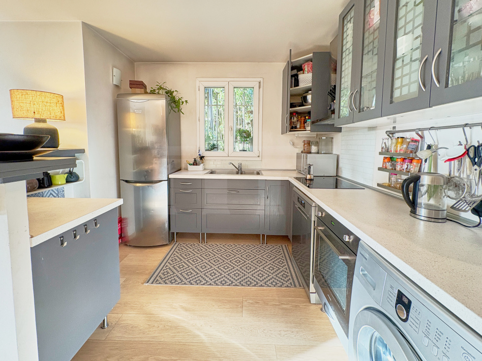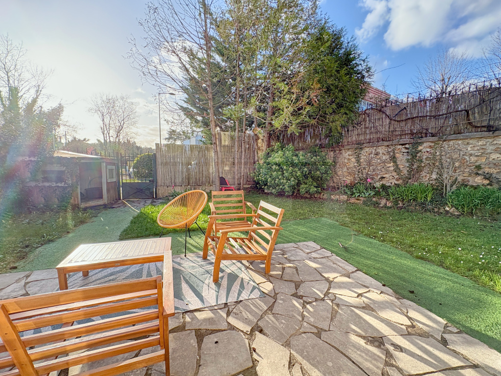 Dans une petite copropriété située sur Viroflay rive droite, appartement de 3 pièces d'une surface de 54,1 m2 habitables bénéficiant d'une terrasse et d'un beau jardin privatif faisant le tour de l'appartement.Il comprend une entrée avec placard, WC séparés, salle de douche, 2 chambres, cuisine US aménagée et équipée et pièce de vie sans vis-à-vis avec un bow window donnant accès à une terrasse et un jardin exposé ouest.Sur le jardin un cabanon et accès à une cave bétonnée sur l'arrière (côté chambres).Place de parking privative extérieure juste devant le portillon du jardin.A 5 minutes à pieds de la gare rive droite et des écoles.